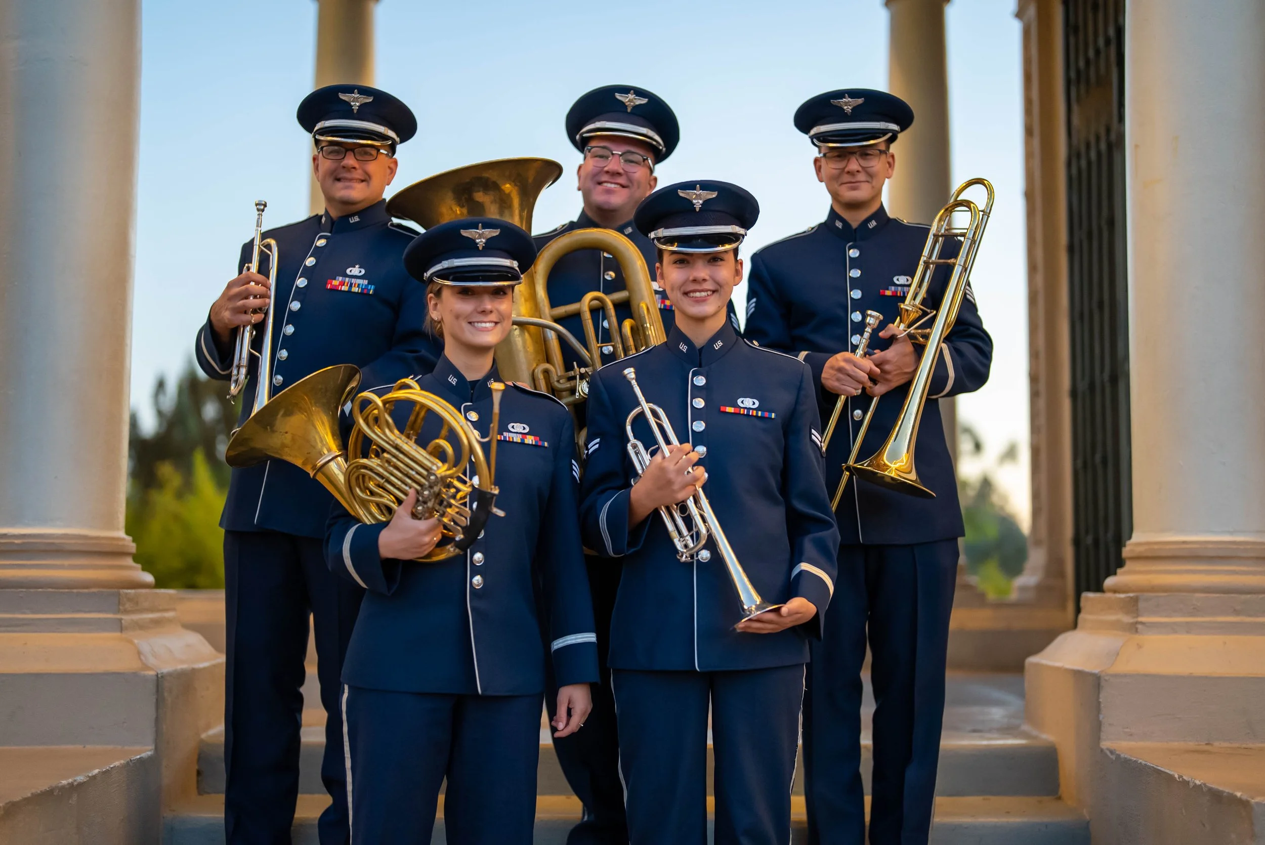 As part of the Band of the Golden West, the mission of Golden West Brass is to harness musical excellence to HONOR our nation and those who have served, INSPIRE patriotism and resilience in our Airmen, Guardians, and nations’ citizens, and CONNECT the Air Force with the American public and community partners. The excellence demonstrated by our brass quintets reflect the excellence displayed by all Airmen stationed worldwide, whose selfless service and sacrifices ensure the freedoms enjoyed by citizens of the United States of America.