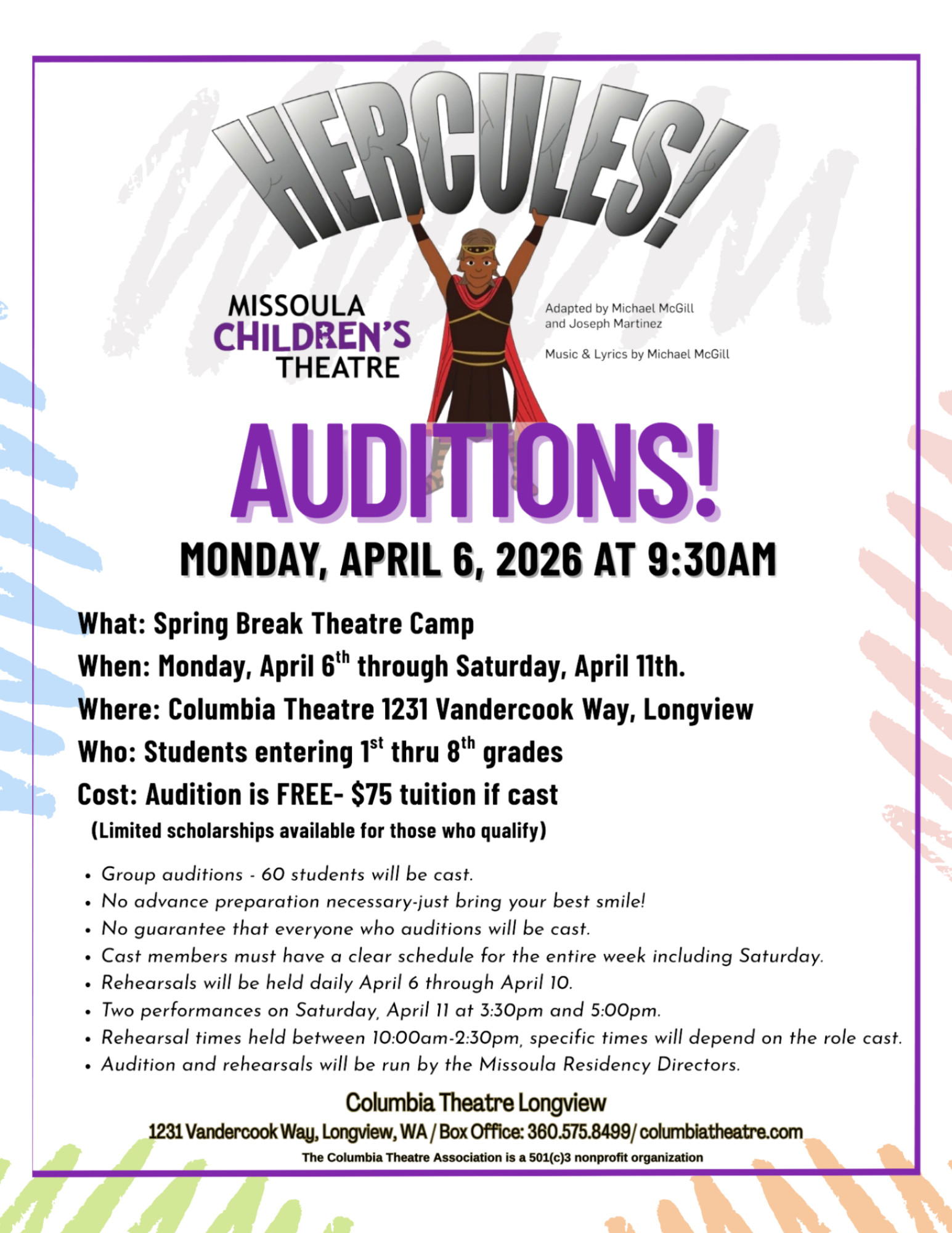 SPRING BREAK THEATRE CAMP “HERCULES” IN PARTNERSHIP WITH MISSOULA CHILDREN’S THEATRE